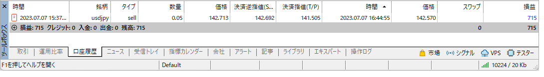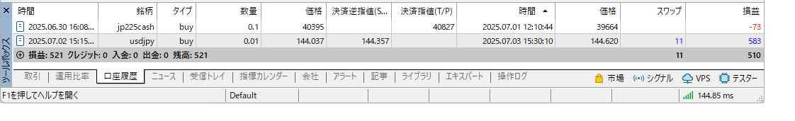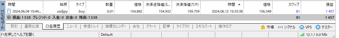 6月も一度もエントリーせずに終わり、毎日スワップ金利を受け取るだけの日々を送っていました。